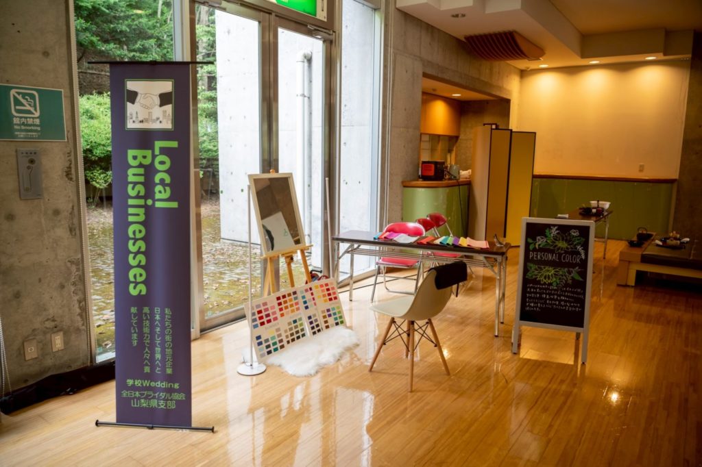 前回同様、都留市商工会の協力のもと、パーソナルカラー診断やお茶の体験ブースを出して頂いたり、地元企業のブース協力や、うぐいすホール見学なども行いました。